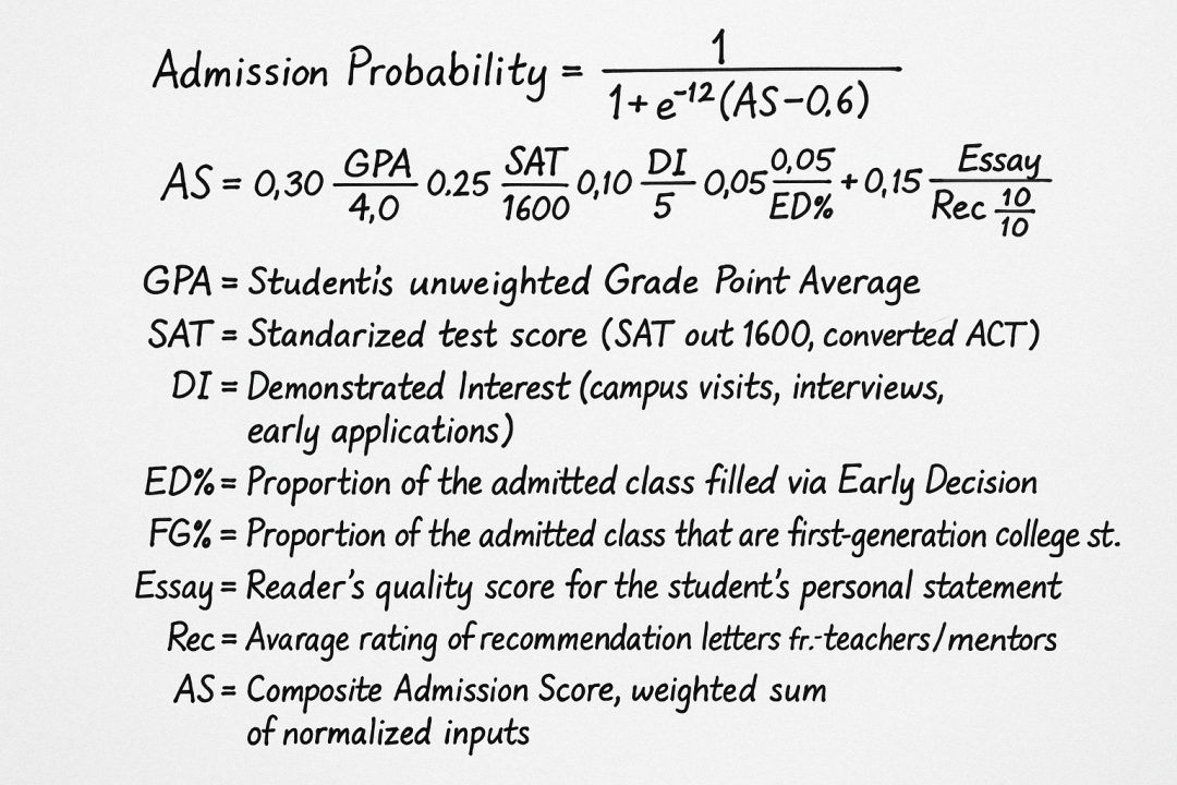 And if you believe any of the above, I have a bridge in Brooklyn to sell you. I created the formula by me telling *ChatGPT to “create a realistic-looking formula” and to “add some calculus symbols.” At most selective colleges, there is no admissions formula. There is no single thing that guarantees admission. Anyone who tells you different is trying to sell you something. Getting obsessed with predicting what colleges a student will get into to isn’t a great use of time. It just increases the odds you’ll fall for fancy looking nonsense like the above formula.